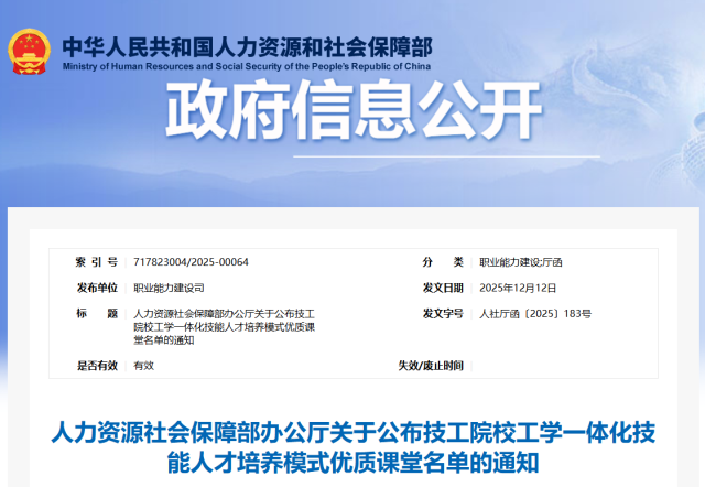 此次优质课堂遴选经院校申报、省级选拔、部级评审等多轮环节,最终全国共确定369个优质课堂。我院课程能够脱颖而出,体现了学院在工学一体化教学改革中的扎实成效与创新实践。。近年来,学院机电一体化技术等5个专业获评全国技工院校工学一体化建设专业,学院牵头成立的眉山技师学院集团入选全国技工教育联盟(集团)建设院校名单。